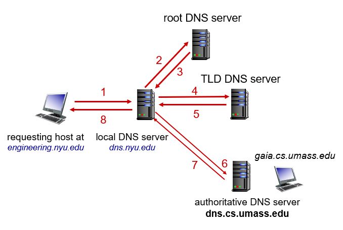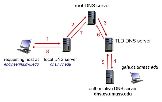 - 호스트가 DNS에 질의를 보내면, 이 질의는 먼저 프록시로 동작하는 로컬 DNS 서버에게 전달되고, 그 로컬 DNS 서버는 이 질의를 DNS 서버에 전달한다.