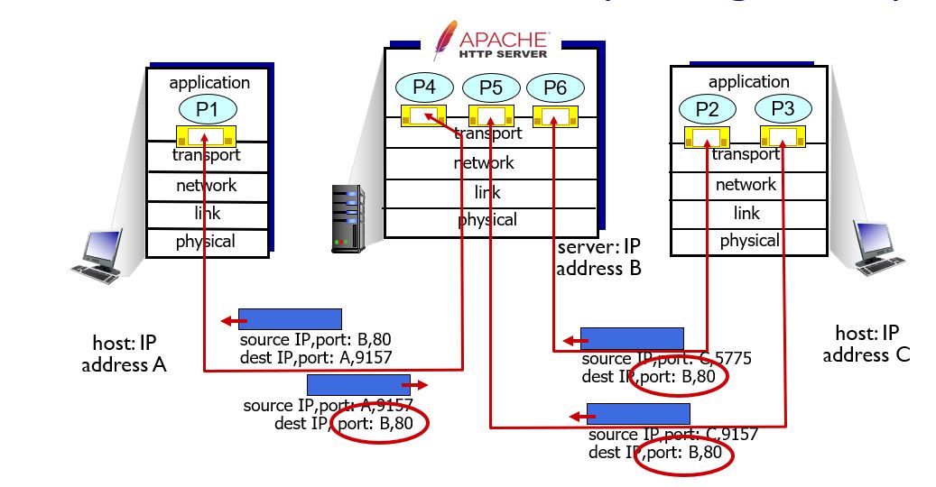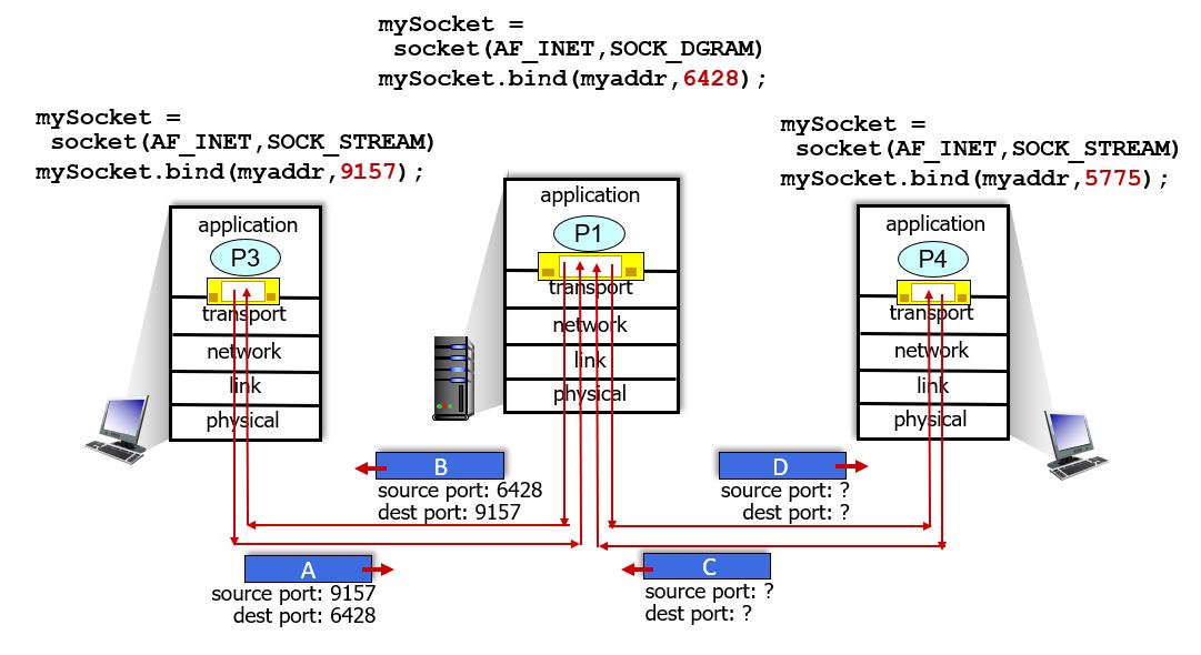 - 수신 측 호스트의 트랜스포트 계층은 실제로 데이터를 직접 프로세스로 전달하지 않고, 대신에 중간 매개자인 소켓에게 전달한다.