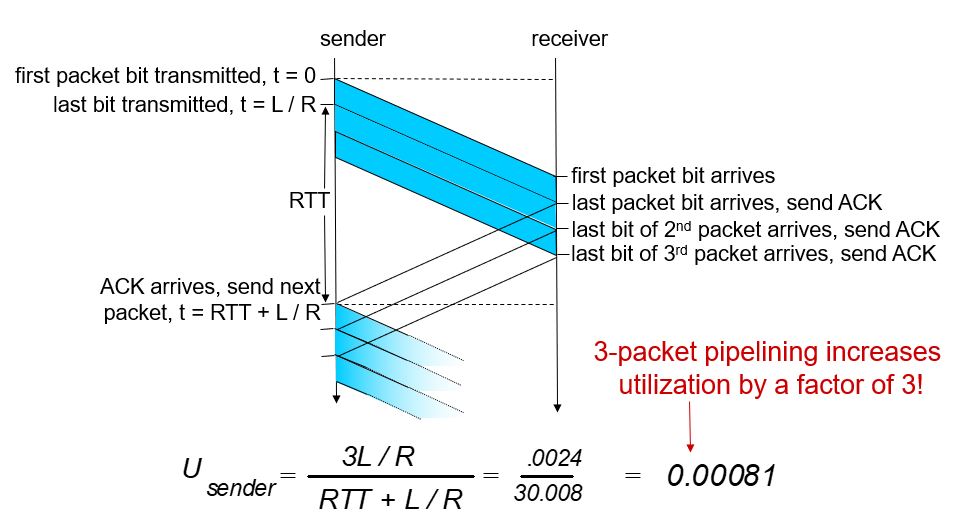 프로토콜 rdt 3.0은 기능적으로 정확하지만 성능적으로는 만족하지 못한다.