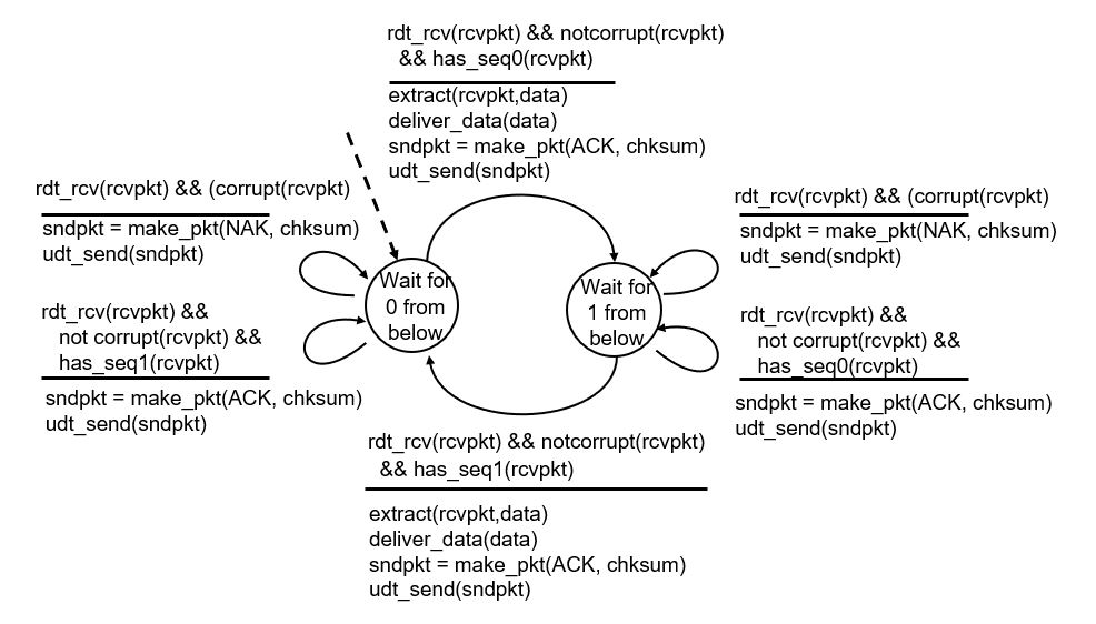 rdt 2.0은 잘 동작하는 것 같지만, 치명적인 결함이 있다. ACK 또는 NAK가 손상될 가능성을 고려하지 않았다. 손상된 ACK 또는 NAK를 처리하기 위한 대안은 다음과 같다.