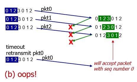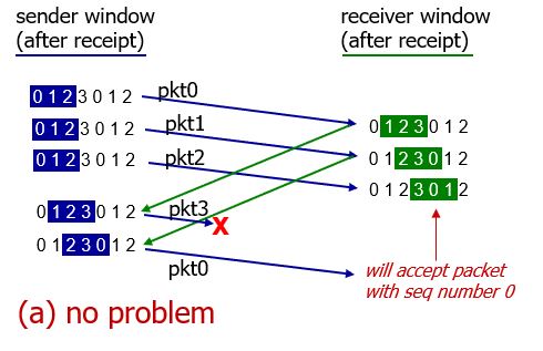 SR에서는 수신자가 현재의 윈도 base보다 작은 특정 순서 번호를 가진 이미 수신된 패킷을 무시하지 않고 재확인 응답을 하는 것이 중요하다.