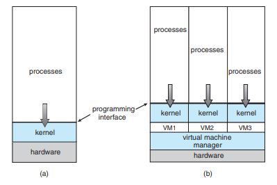 가상 머신 관리자(VMM, virtual machine manager)는 게스트 운영체제를 수행하고 그들의 자원 이용을 관리하며 각 게스트를 서로로부터 보호한다.