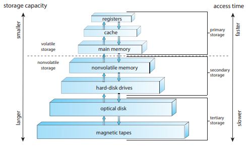 - 하드 디스크 드라이브(HDD)와 비휘발성 메모리(NVM)등이 존재한다.
