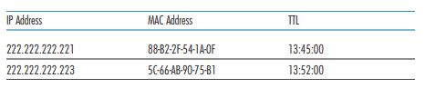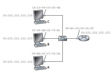 222.222.222.220 IP 주소를 가진 호스트가 222.222.222.222 IP 주소를 가진 호스트에게 IP 데이터그램을 전송하려면 IP 주소뿐만 아니라 MAC 주소도 필요하다.