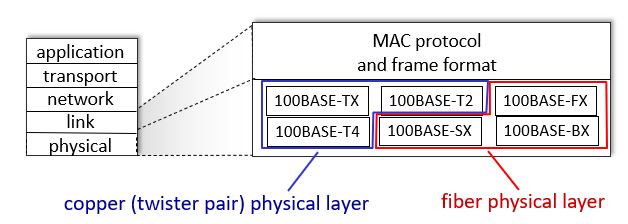 - 다양한 물리 매체(광섬유, 케이블) 및 표준 속도에 따라 약어가 정해짐
