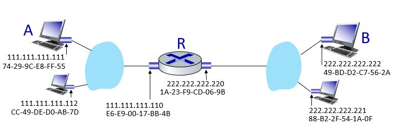 222.222.222.220 IP 주소를 가진 호스트가 222.222.222.222 IP 주소를 가진 호스트에게 IP 데이터그램을 전송하려면 IP 주소뿐만 아니라 MAC 주소도 필요하다.
