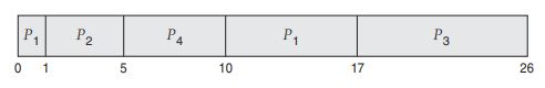 시간 할당량이 4밀리초면, 평균 대기시간은 ((10 - 4) + 4 + 7) / 3 = 5.66 밀리초이다.
