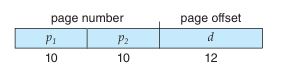 - 외부 페이지 테이블 P1과 내부 페이지 테이블 P2는 각각 10비트를 할당 받는다.