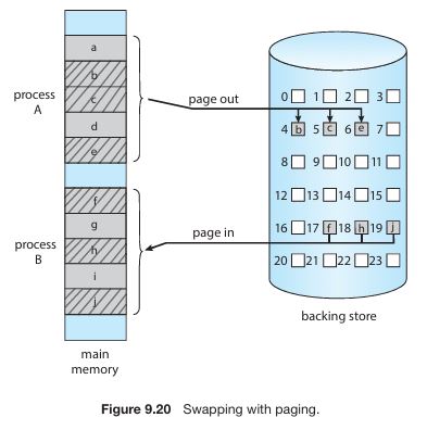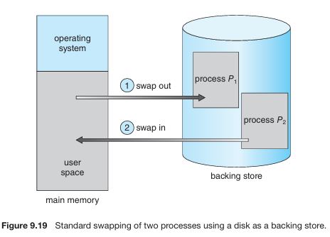 - 프로세스 또는 프로세스의 일부분은 실행 중에 임시로 백업 저장장치(backing store)로 내보내 졌다가 실행을 계속하기 위해 다시 메모리로 되돌아 올 수 있다.